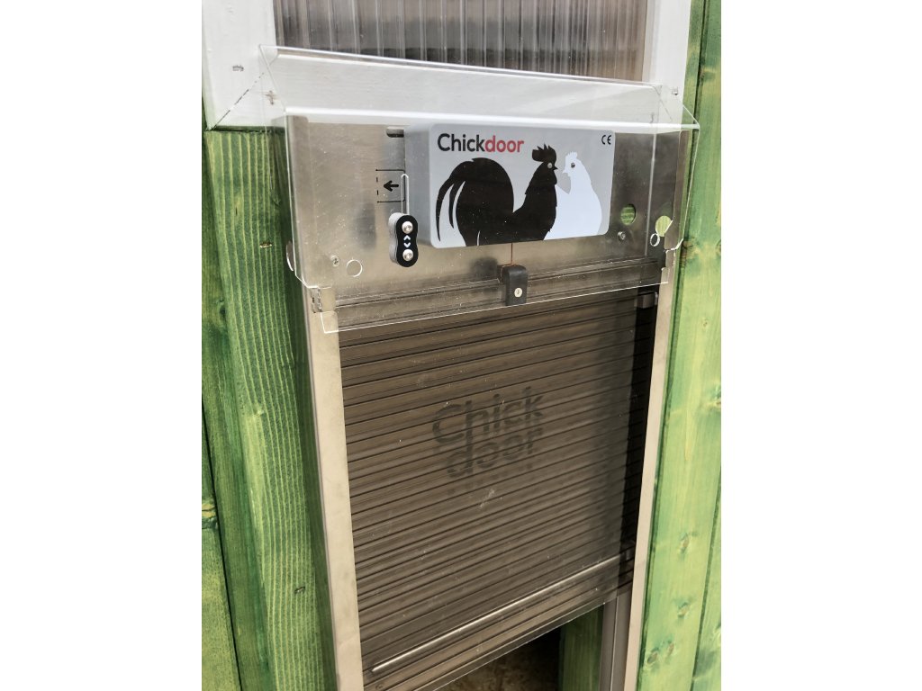 - ochranná stříška s tlačítkem pro manuální otevření a zavření dvířek