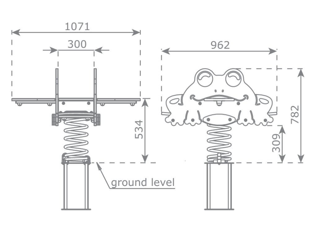 Krásná a kvalitní čtyřhoupačka v designu Žáby je skvělým doplňkem jakéhokoliv hřiště ve veřejném sektoru. Čtyřhoupačka Žába je vyrobena z kvalitní nerezové oceli, pevného HDPE plastu a všechno to stojí na kvalitní pružině o průměru materiálu 20 mm. Plastová pružinová houpačka je určená pro děti od 3 do 12 let.