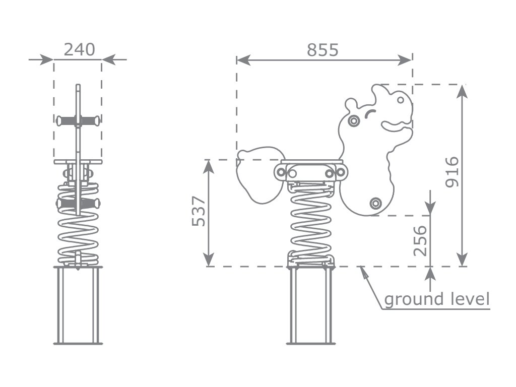 Pružinová houpačka v pěkném designu nosorožce, potěší všechny děti a rozveselí každé hřiště.