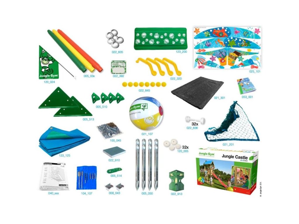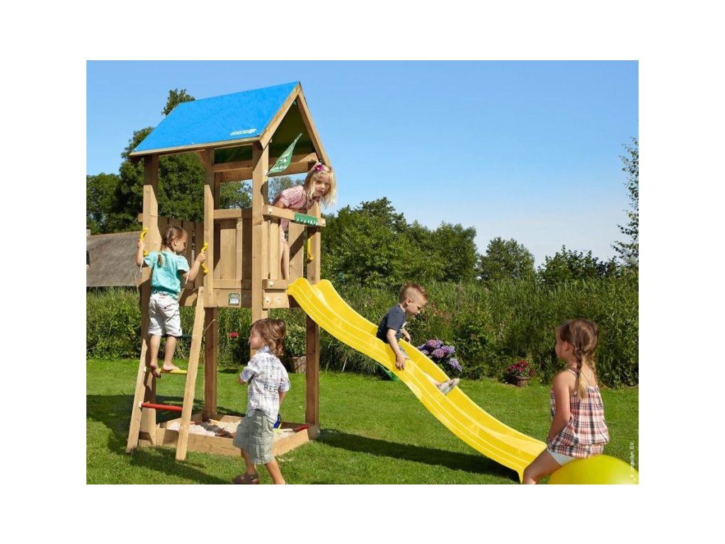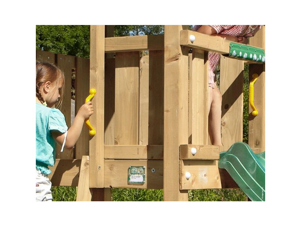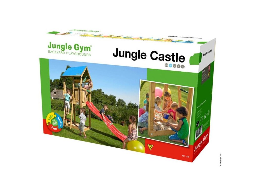 Dětské hřiště Jungle Gym Castle patří do řady nejmenších hřišť. Hřiště Castle obsahuje výstupní žebřík, pískoviště v dolní části sestavy a skluzavku (nutno doobjednat). V dolní části pískoviště. Hřiště je vyrobeno z lepených mimo středových hranolů s povrchovou úpravou - impregnace. Hřiště se skládá z krabice, dřeva a skluzavky (nutno doobjednat). Hřiště je certifikované s normou EN 71 pro privátní použití.