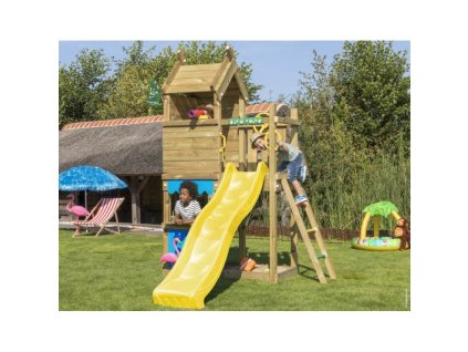 Moderní, neokoukané a kompaktní, přesně to je dětské hřiště s názvem Jungle Totem. Holandský design promění Vaši zahradu a dodá ji šarmantní vzhled. Hřiště se pyšní víceúčelovou lavičkou, která je využitelná mnoha způsoby. Skluzavka s pískovištěm a naklopeným žebříkem zůstávají samozřejmostí, jako u mnoha našich hřišť a domků. V této brilantní kompozici zůstává i volant s dalekohledem, které jsou přidělané na podestě vysoké 125 cm.