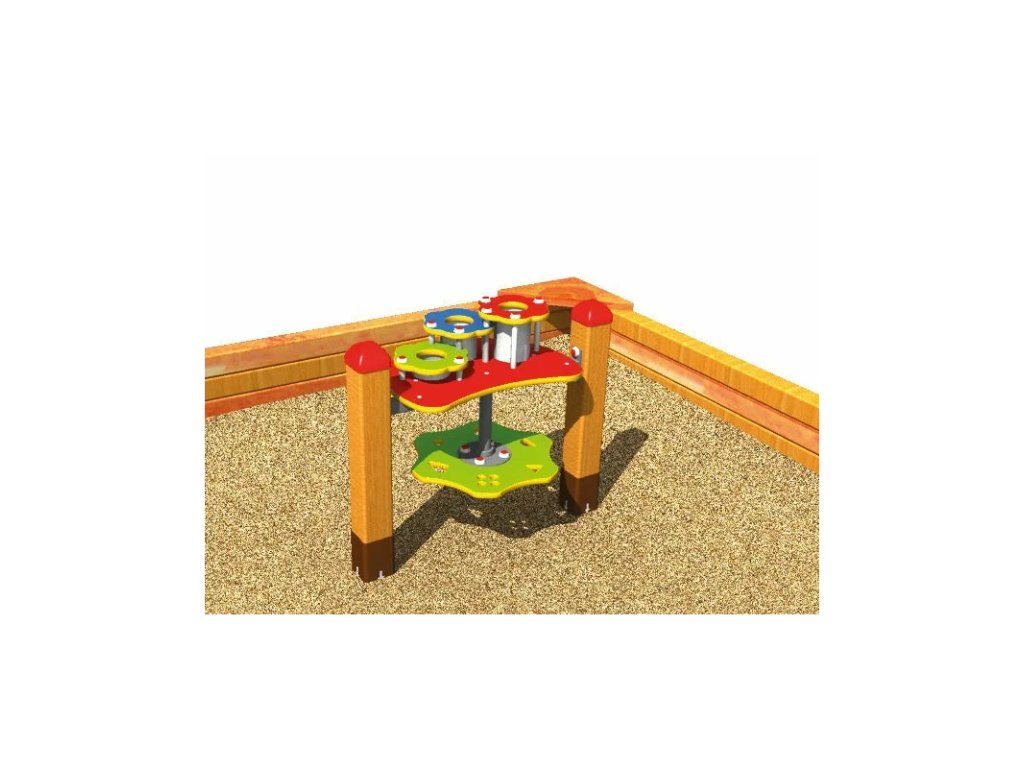 Hrací stoleček zpestří dětem hru na písku. Obsahuje 3 násypky různých velikostí a otočný přesýpací kruh.