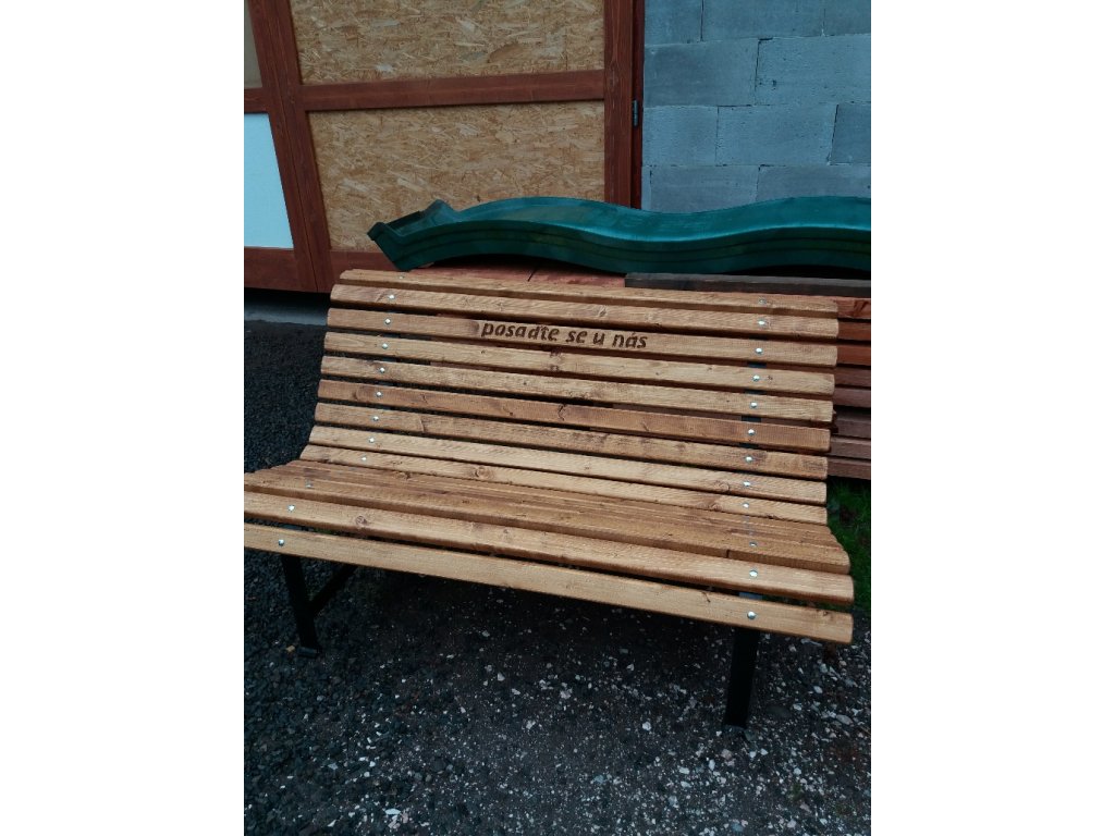 Na naší zahradní lavičku masiv Vám můžeme vyfrézovat téměř cokoliv... název firmy, obce, jména či vzkaz...