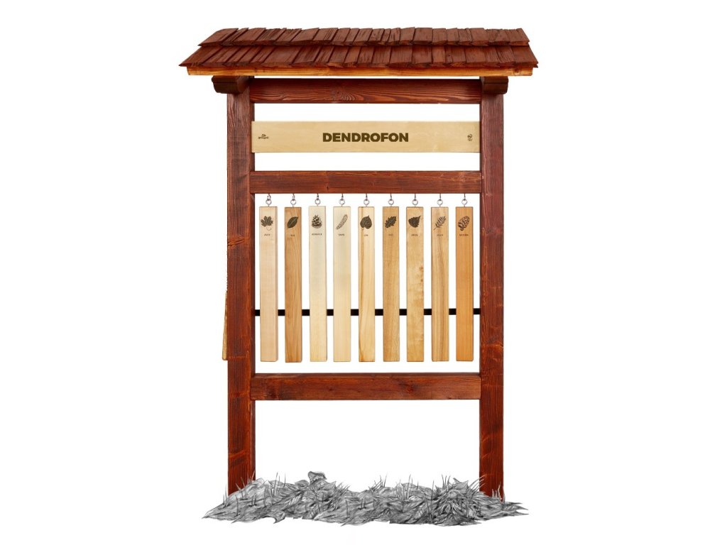 Edukační panel s lamelami ze základních tuzemských dřevin umožňuje dětem i dospělým poznávat vlastnosti dřeva prostřednictvím zvuku. Součástí prvku je palička, pomocí které lze na jednotlivé lamely hrát a porovnávat jejich odlišný zvuk.