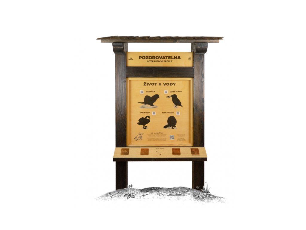Pozorovatelna obsahuje 4 frotáže, QR kód s hlasem zvířete a autorské ilustrace. Návštěvník si pomocí palce a ukazováčku vytvoří kukátko a hledá maketu umístěnou v blízkém okolí. Navíc si může odnést otisk (frotáž) a zjistit hlas prostřednictvím aplikace a QR kódu.