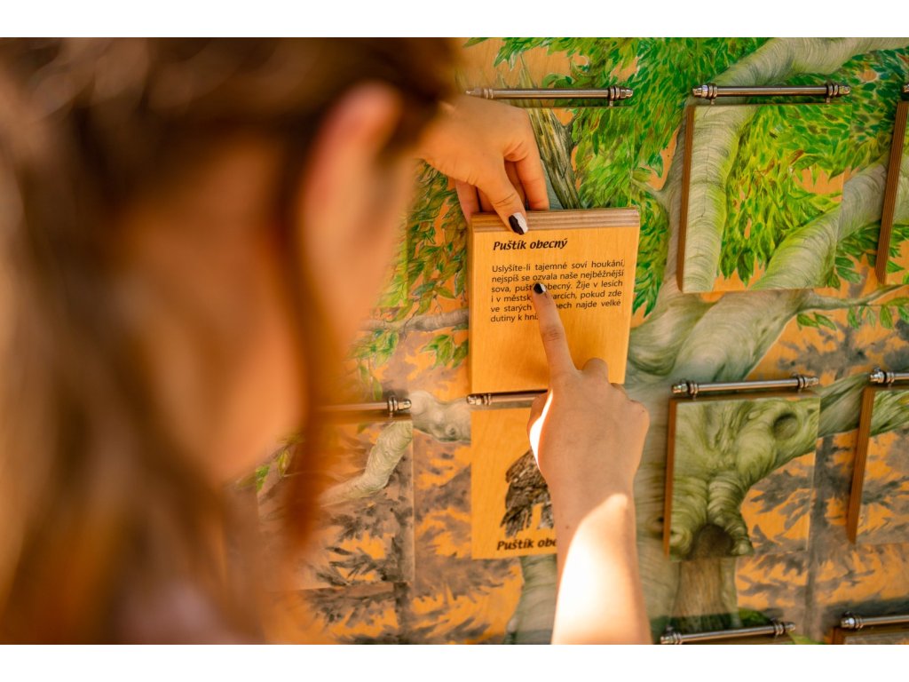 Pod 16 odklopnými dřevěnými destičkami najdou návštěvníci detailní ilustrace a zajímavosti o zástupcích živočišné i rostlinné říše, včetně názvů rodového, druhového i latinského.