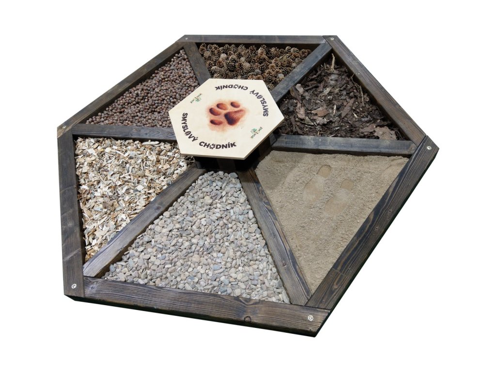 Hmatové chodníky prospívají smyslovému a motorickému rozvoji. Učení prožitkem je pro dítě velkým přínosem. Doporučeno lékaři. Vhodné do MŠ, rehabilitačních center. Šestihranný hmatový chodník je s lavičkou uprostřed. Smyslový chodník dodáváme bez obsahu a můžete si ho tak naplnit, podle svých představ.
