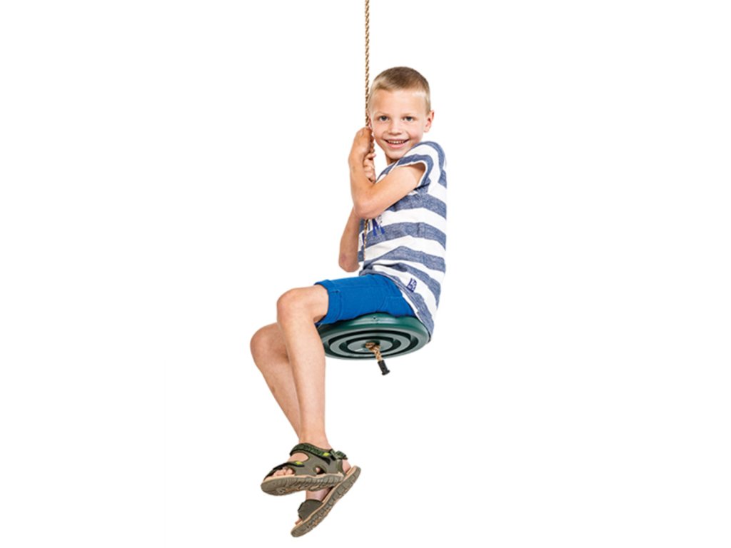 Sedadlo je vyrobeno z odolného HDPE plastu, který zaručuje dlouhou životnost a příjemné sezení. Lano je z kvalitního PP (polypropylenu), který je pevný a odolný vůči povětrnostním vlivům.