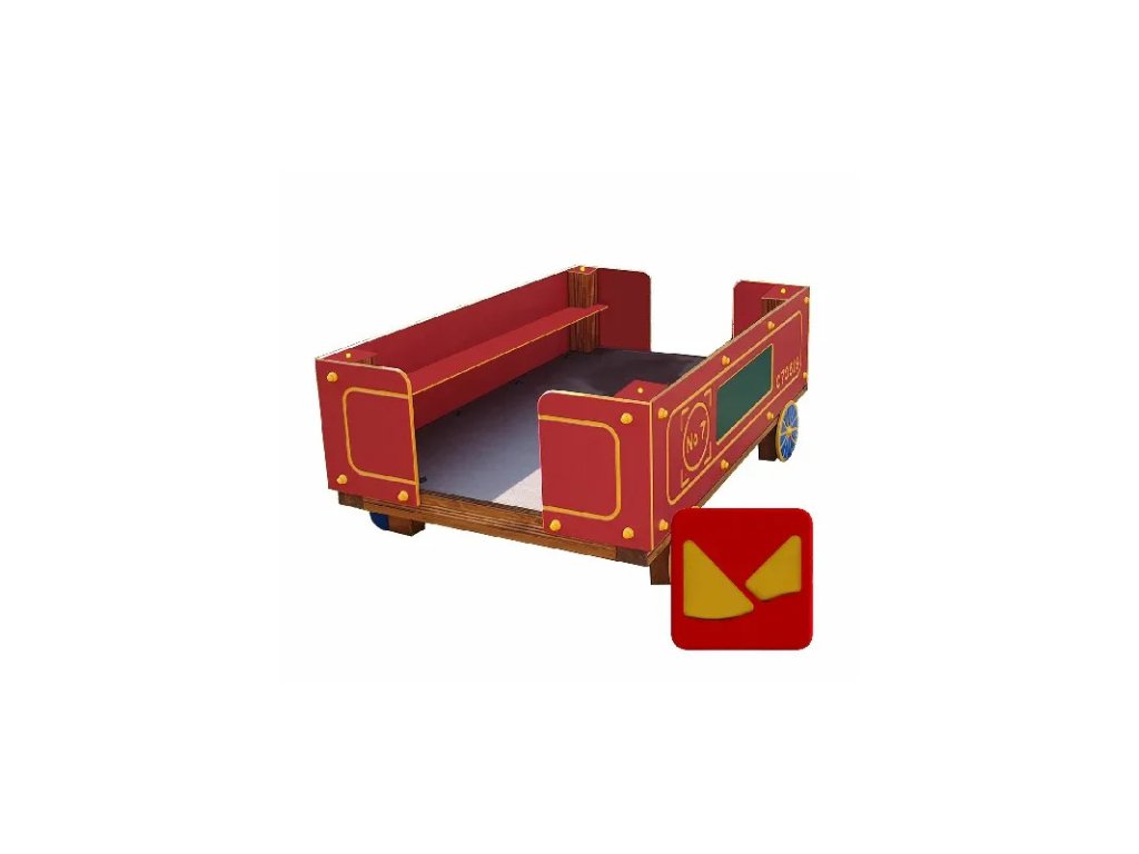 Vagón je vyroben z KVH hranolů a HDPE desek. HDPE (vysokohustotní polyethylen) je lehký, ale zároveň velmi pevný a odolný materiál, který dobře snáší povětrnostní vlivy, UV záření i nárazy. Díky tomu je tento produkt vhodný pro venkovní použití na školních zahradách i ve veřejných herních prostorech.
