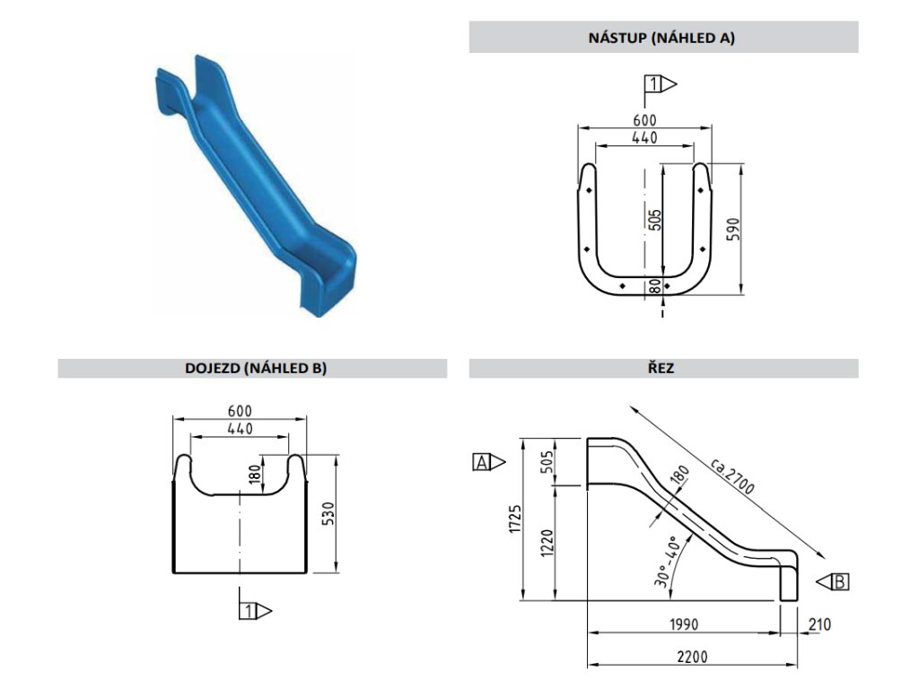 Kvalitní laminátová skluzavka vhodná pro veřejná dětská hřiště. Pevný a odolný materiál zaručuje dlouhou životnost i při intenzivním používání. Díky promyšlenému tvaru je skluzavka bezpečná i pro menší děti, má pohodlný nástup a plynulý dojezd.