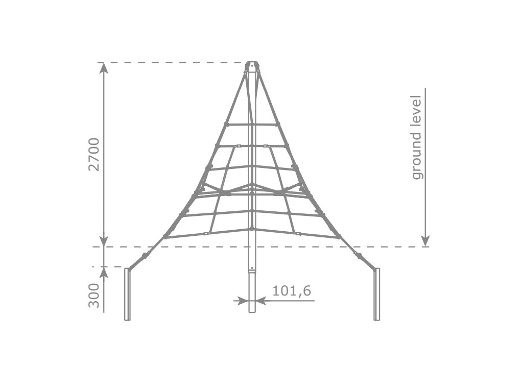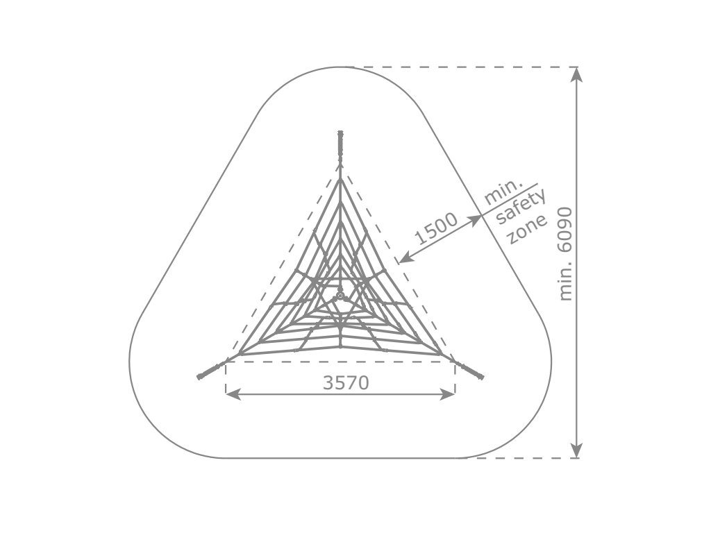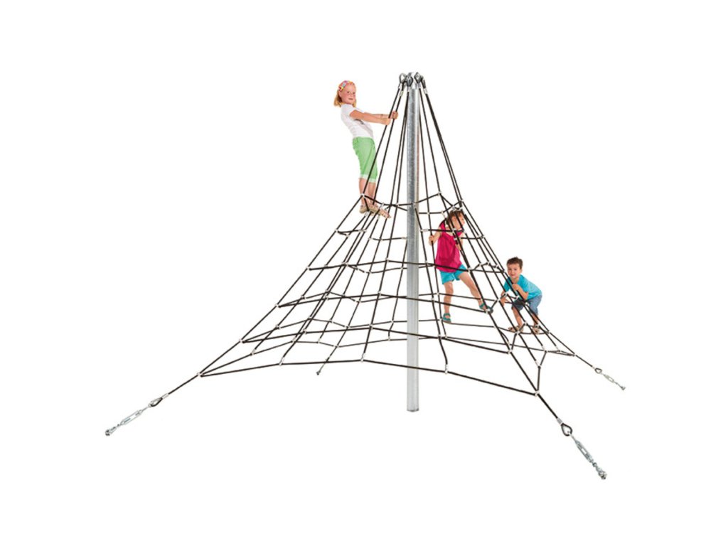 Lanová pyramida s výškou 2,7 m nabízí dětem prostor pro společné objevování, lezení a hraní a stane se středobodem každého dětského hřiště nebo školní zahrady. Tato varianta je třístranná a má 3 ukotvení.