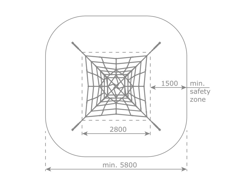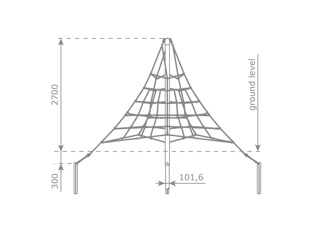 Lanová pyramida s výškou 2,7 m nabízí dětem prostor pro společné objevování, lezení a hraní a stane se středobodem každého dětského hřiště nebo školní zahrady. Tato varianta je čtyřstranná a má 4 ukotvení.