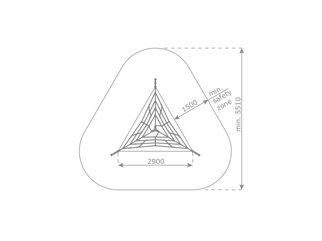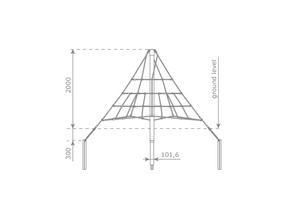 Lanová pyramida s výškou 2 m nabízí dětem prostor pro společné objevování, lezení a hraní a stane se středobodem každého dětského hřiště nebo školní zahrady. Tato varianta je třístranná má 3 ukotvení.