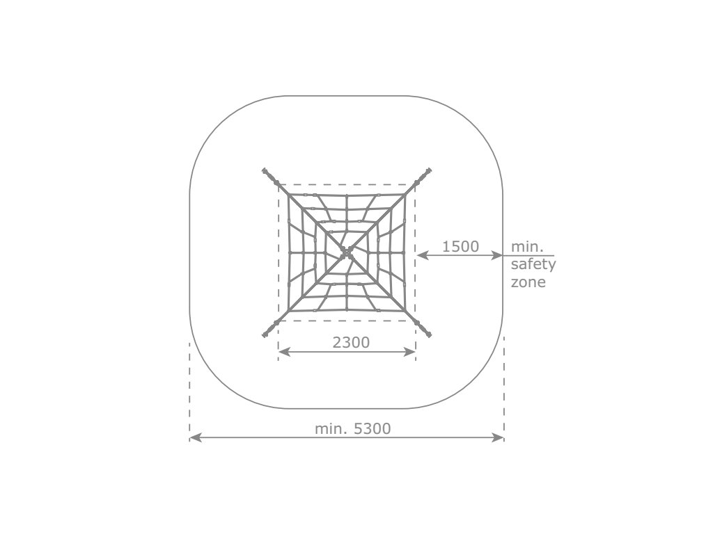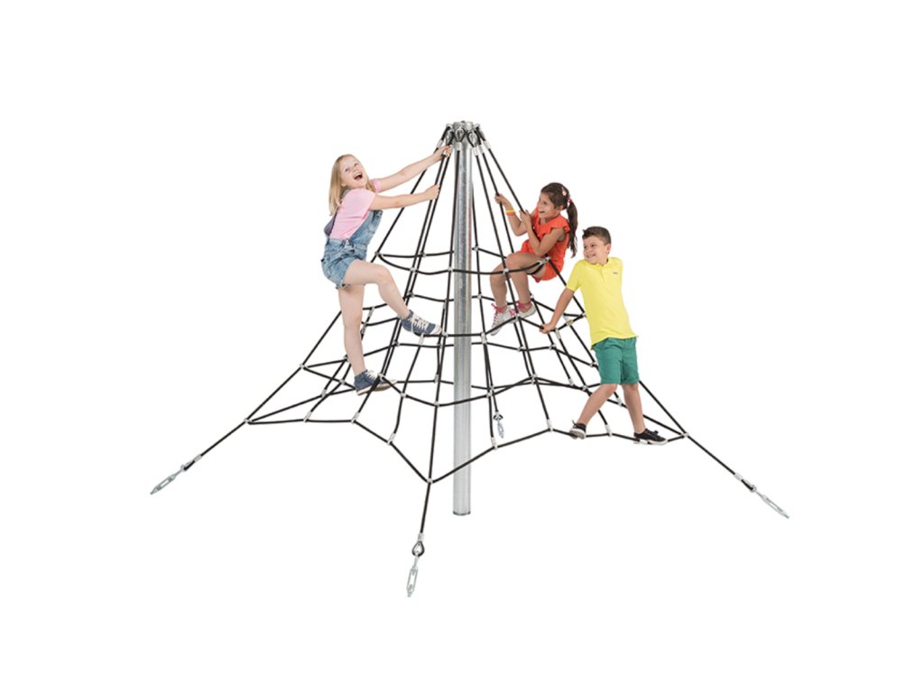 Lanová pyramida s výškou 2 m nabízí dětem prostor pro společné objevování, lezení a hraní a stane se středobodem každého dětského hřiště nebo školní zahrady. Tato varianta je čtyřstranná a má 4 ukotvení.