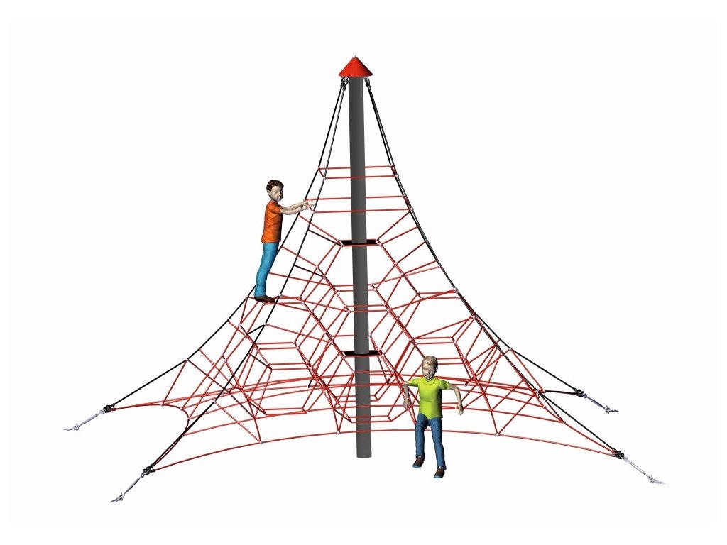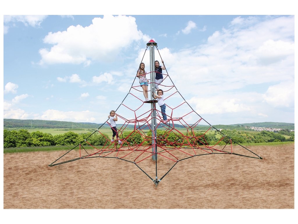 Lanová pyramida Pavouk se 4 ukotveními nabízí dětem prostor pro společné objevování, lezení a hraní a stane se středobodem každého dětského hřiště nebo školní zahrady.