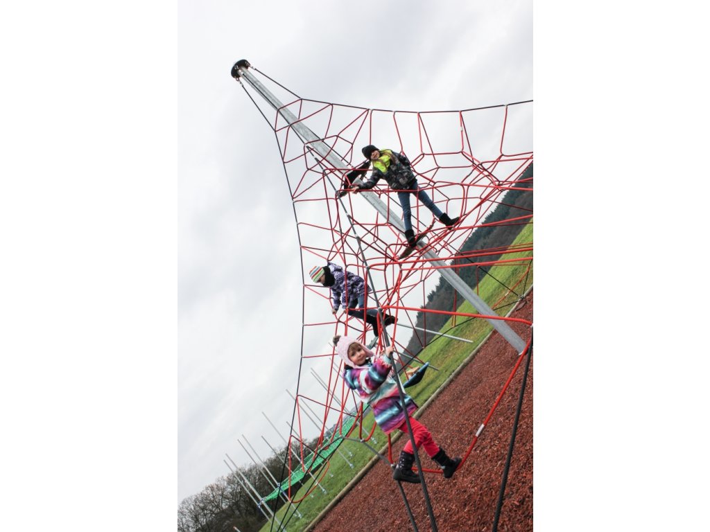 Lanová pyramida Pavouk se 4 ukotveními nabízí dětem prostor pro společné objevování, lezení a hraní a stane se středobodem každého dětského hřiště nebo školní zahrady.
