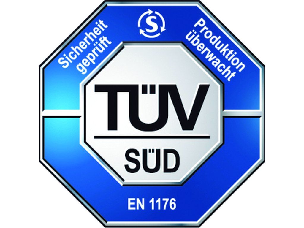 Bezpečnost je pro nás prioritou – proto tento produkt splňuje platný certifikát ČSN EN 1176 pro použití na veřejných hřištích.