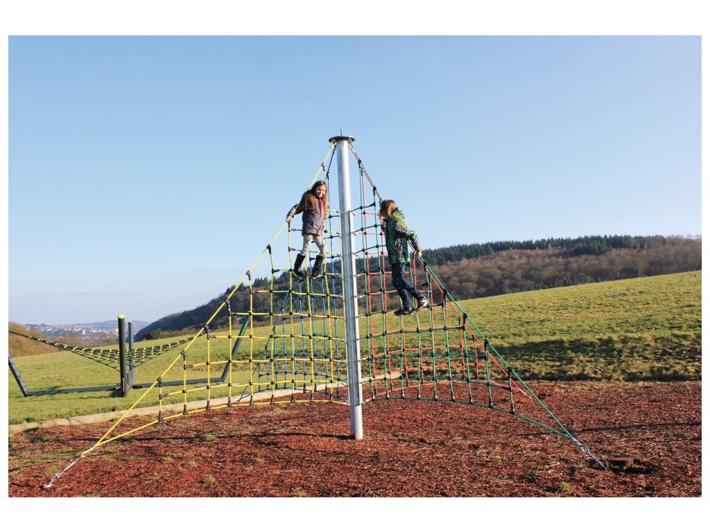 Lanové pyramidy mají svůj vlastní „vnitřní život“ - provazové žebříky, ptačí koše, síťové roviny a další pyramidové prvky lákají k pohybu. Díky promyšlenému uspořádání a bezpečné síťové konstrukci z lan Herkules děti mohou šplhat stabilně a s radostí.