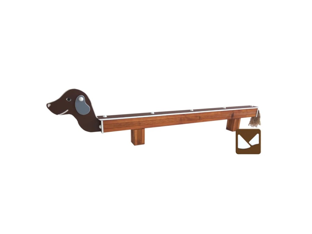 Balanční lavička ve tvaru oblíbeného pejska - jezevčíka - může sloužit jak k posezení, tak k zábavné hře. Děti po ní mohou přecházet, balancovat nebo ji využít k odpočinku během hry.