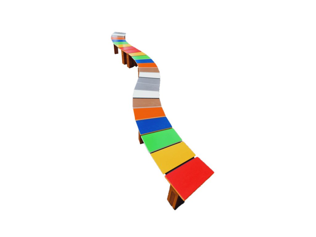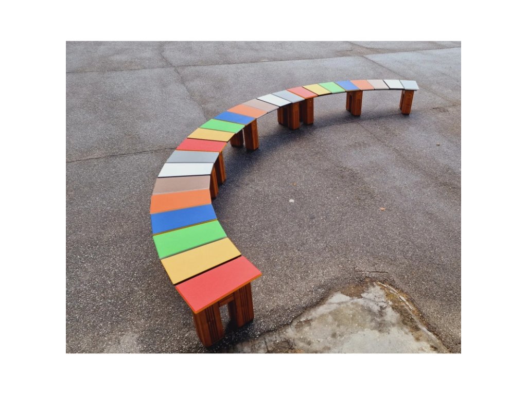 Bezúdržbová variabilní lavička je sedací prvek s jemně zakřiveným tvarem, který přináší jiný pohled na klasické venkovní posezení. Díky tvaru 1/8 kruhu ji lze využít samostatně, nebo spojením více kusů vytvořit vlnovku, kruh či jiný tvar podle potřeby. Tento design představuje zajímavé řešení posezení v zahradách, parcích i herních zónách.