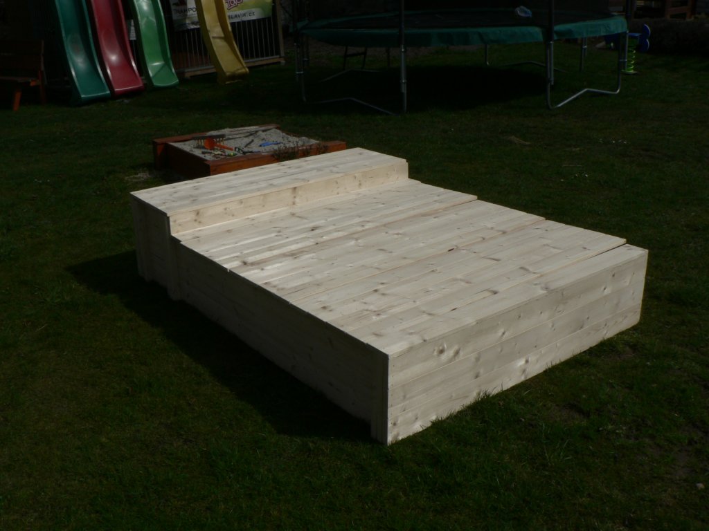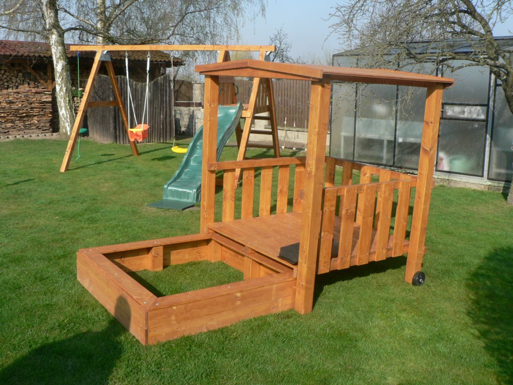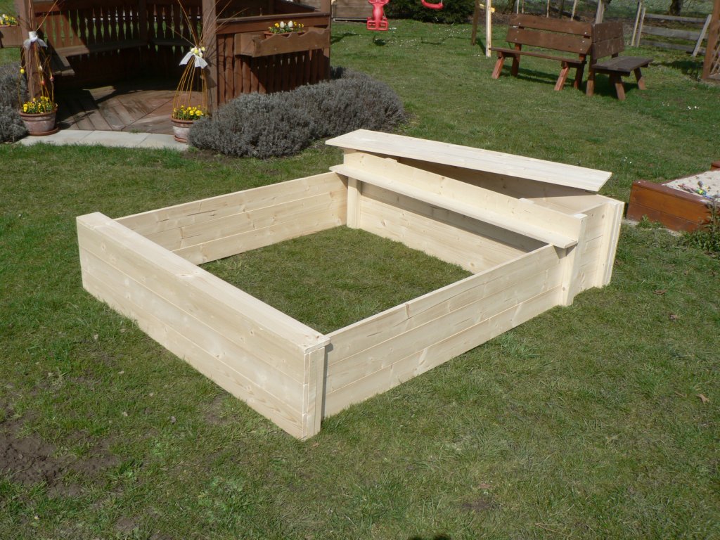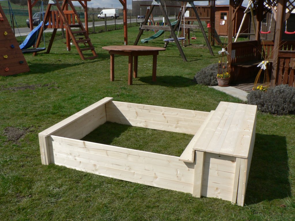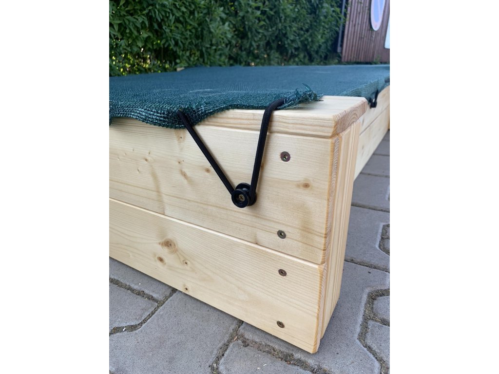 Na přání lze doplnit kryt – pevný dřevěný nebo praktickou ochrannou síť, která chrání písek před nečistotami i nežádoucími návštěvami zvířat. Na zakázku realizujeme také variantu v kombinaci s malým dětským altánkem (ukázku naleznete ve fotogalerii).