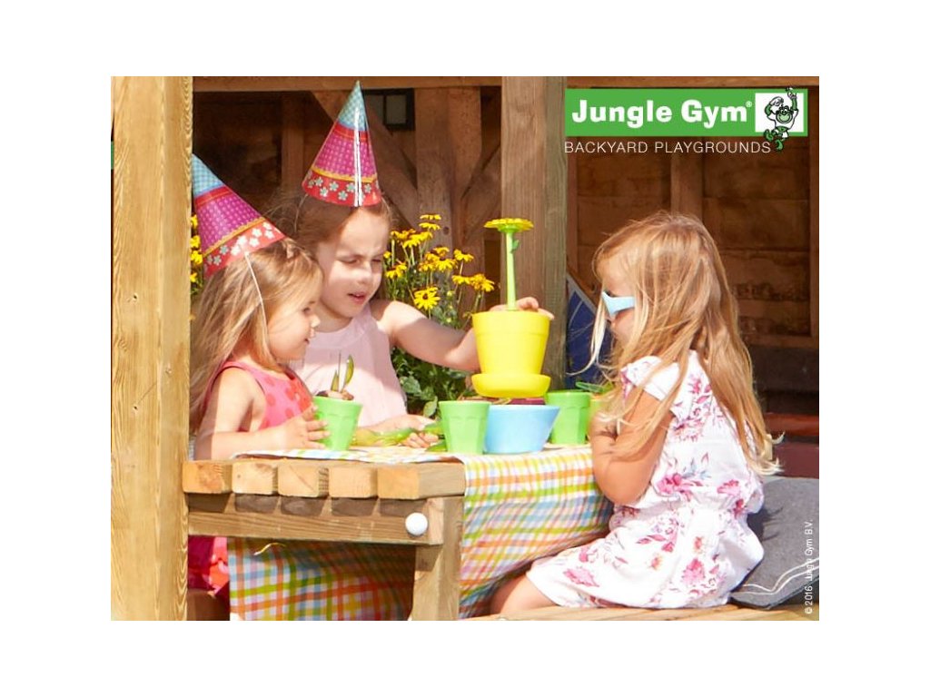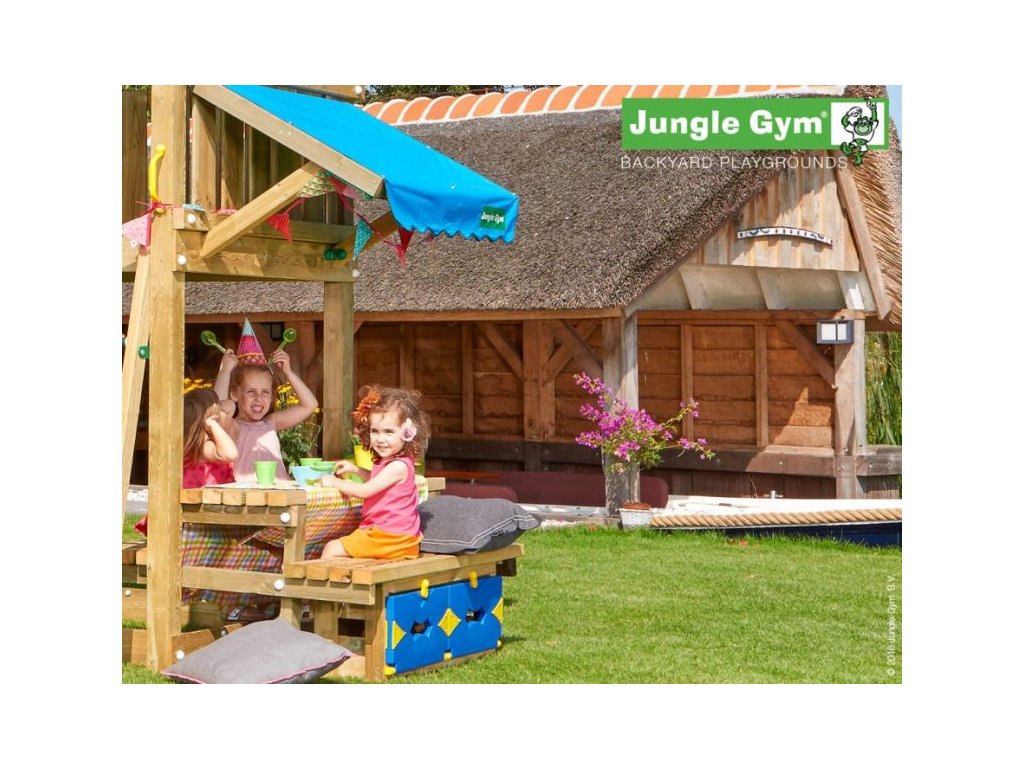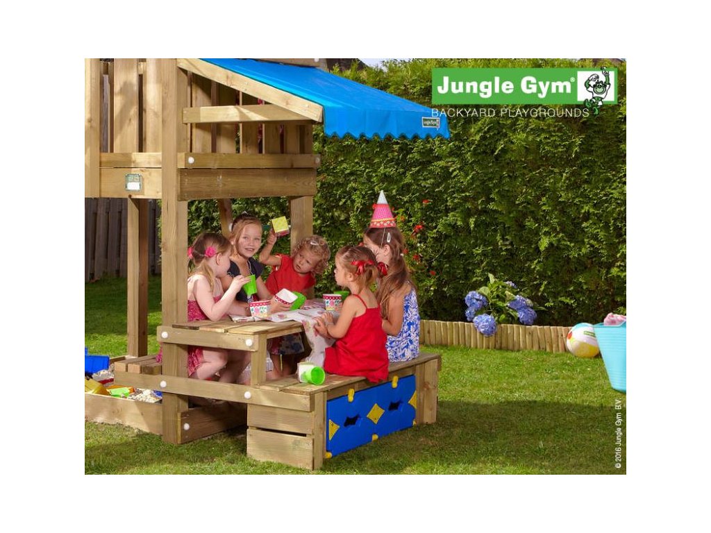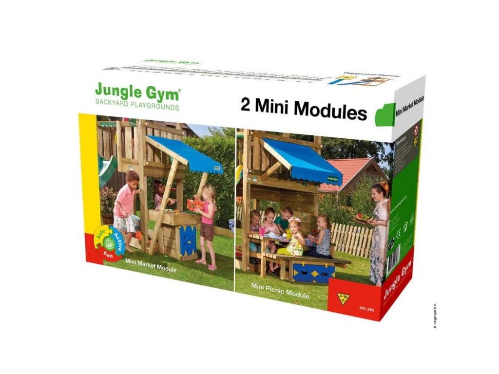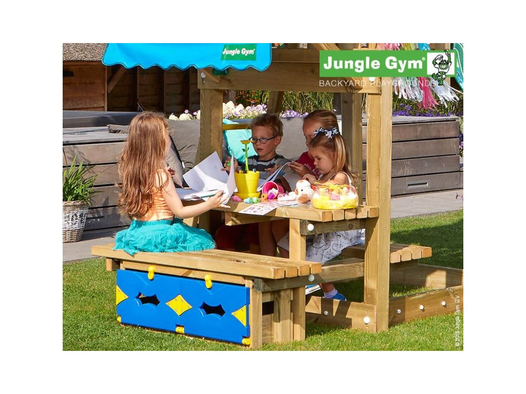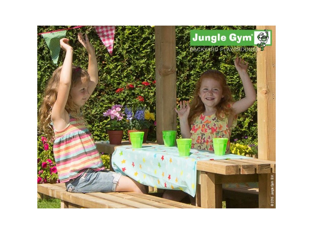 Přídavný modul Jungle Gym Mini Picnic 120 zajistí ještě více zábavy na hřišti. Piknikový stolek umožní dětem uskutečnit skvělou zahradní párty. Modul je vyroben z hoblovaných hranolků a prken s povrchovou úpravou - impregnace. Hřiště se skládá z krabice a dřeva. Hřiště je certifikované s normou EN 71 pro privátní použití.