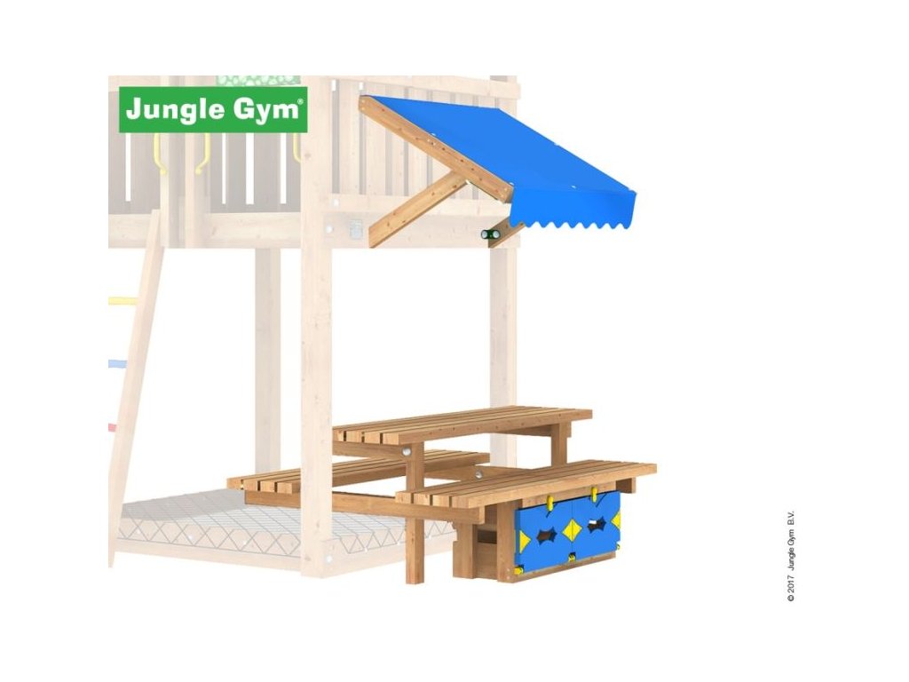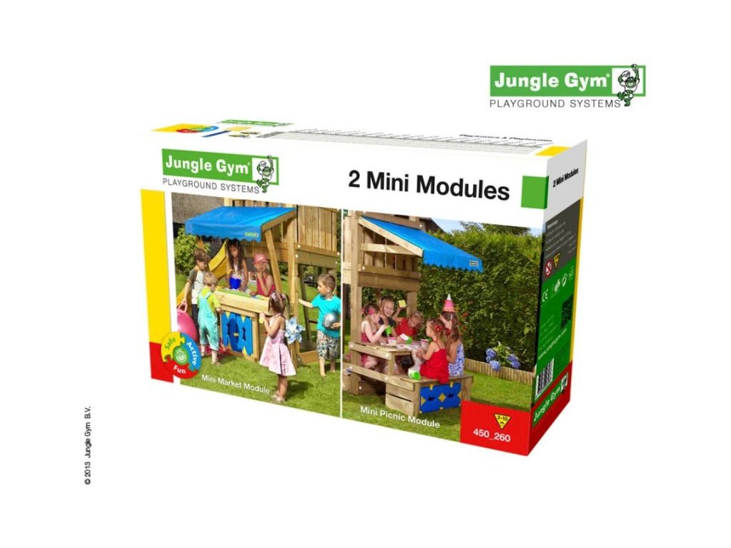 Přídavný modul Jungle Gym Mini Picnic zajistí ještě více zábavy na hřišti. Piknikový stolek umožní dětem uskutečnit skvělou zahradní párty. Modul je vyroben z hoblovaných hranolků a prken s povrchovou úpravou - impregnace. Hřiště se skládá z krabice a dřeva. Hřiště je certifikované s normou EN 71 pro privátní použití.