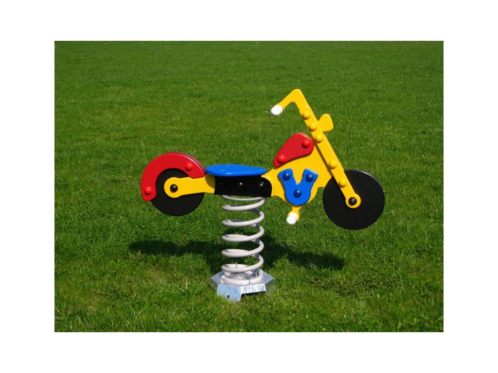 Krásné dětské pružinové houpadlo ve tvaru MOTORKY zaujme všechny malé cestovatele. Je vhodné pro děti od 3 do 10 let. Tudíž se hodí na zahrady MŠ, ZŠ, k hotelům a penzionům a v neposlední řadě také na městská a obecní hřiště.