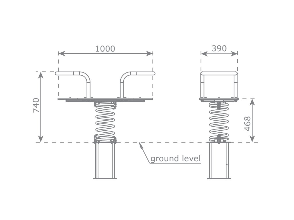 Rukojeti a stupátka jsou vyrobeny z nerezové oceli, sedák z pevného HDPE plastu. Konstrukce a pružiny jsou dodávány v nesmontovaném stavu.