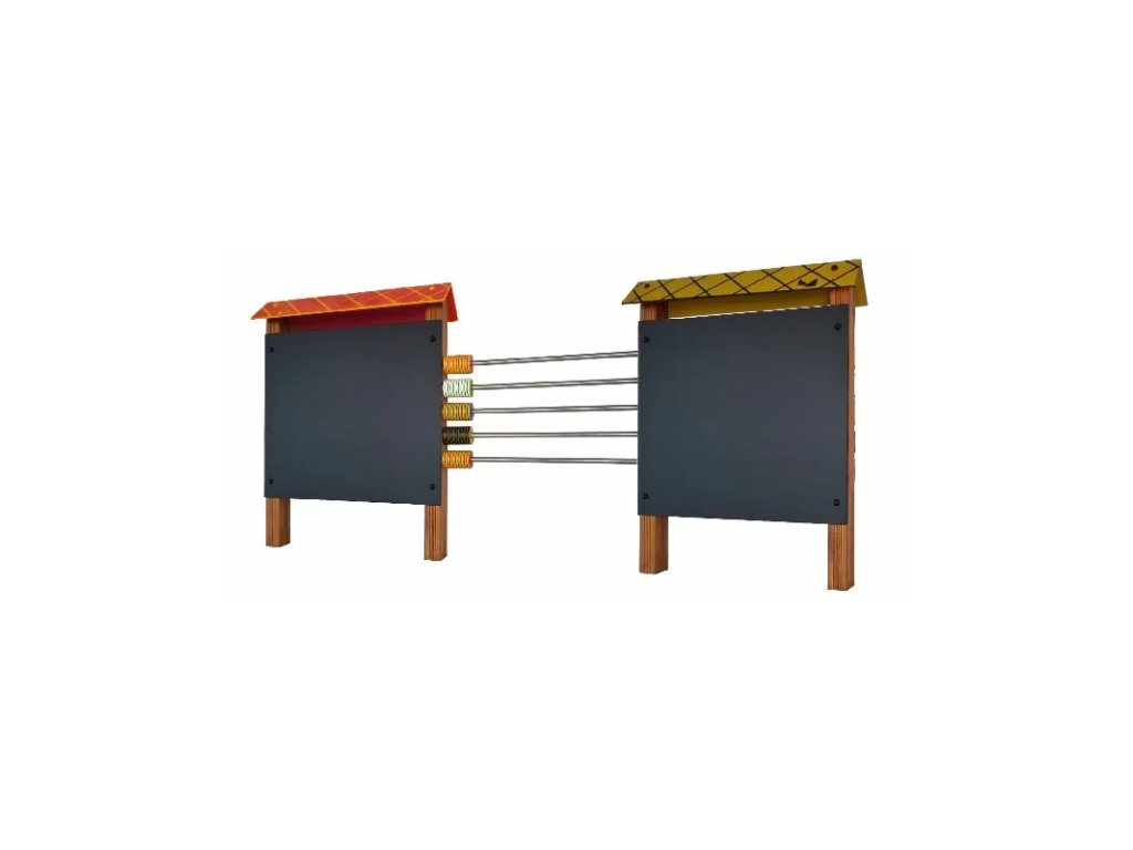 Tabule je vyrobena z KVH hranolů a HDPE desek. HDPE (vysokohustotní polyethylen) je lehký, ale zároveň velmi pevný a odolný materiál, který dobře snáší povětrnostní vlivy, UV záření i nárazy. Díky tomu je tabule vhodná pro venkovní použití na školních zahradách i ve veřejných herních prostorech. Mezi tabulemi je umístěno pět nerezových tyčí s celkem padesáti HDPE kroužky.