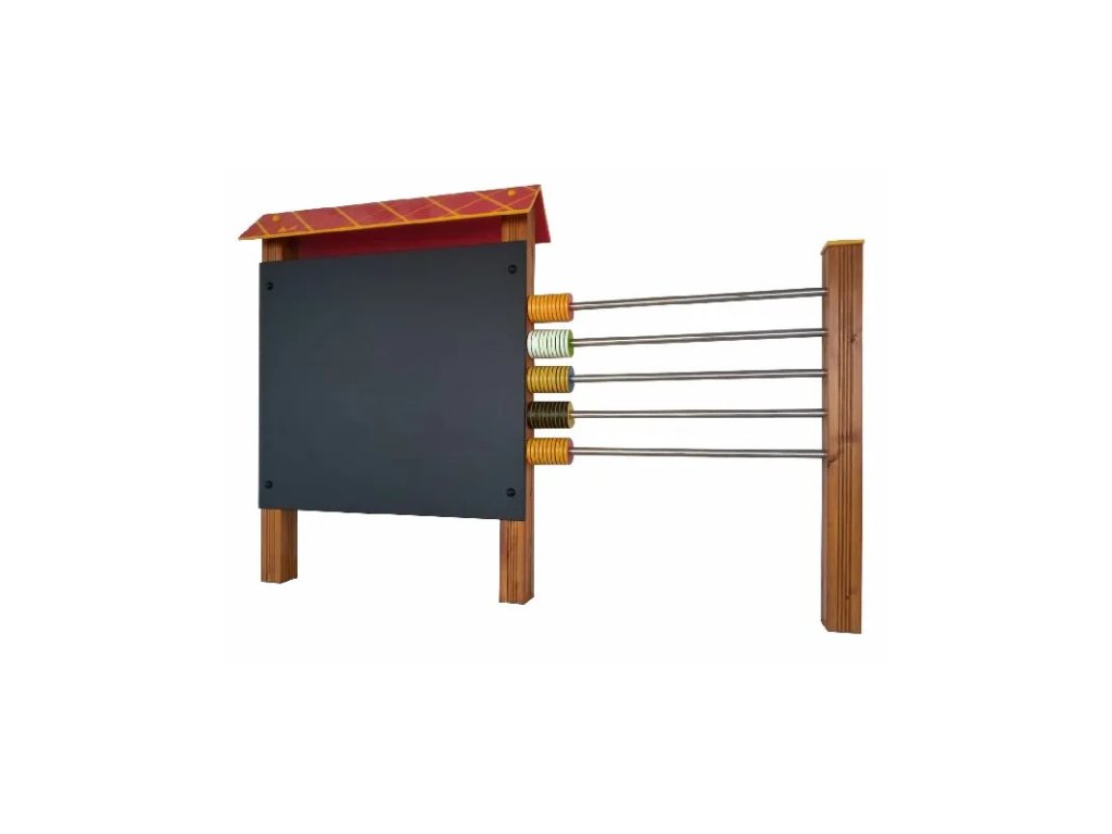 Tabule je vyrobena z KVH hranolů a HDPE desek. HDPE (vysokohustotní polyethylen) je lehký, ale zároveň velmi pevný a odolný materiál, který dobře snáší povětrnostní vlivy, UV záření i nárazy. Díky tomu je tabule vhodná pro venkovní použití na školních zahradách i ve veřejných herních prostorech. K tabuli je připevněno pět nerezových tyčí s celkem padesáti HDPE kroužky.