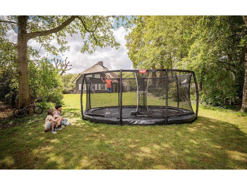Trampolína BERG Grand Elite InGround 520 Grey s ochrannou sítí Deluxe je navržena pro dlouhé a bezpečné skákání.