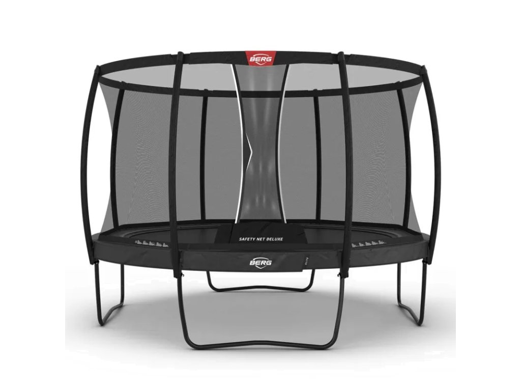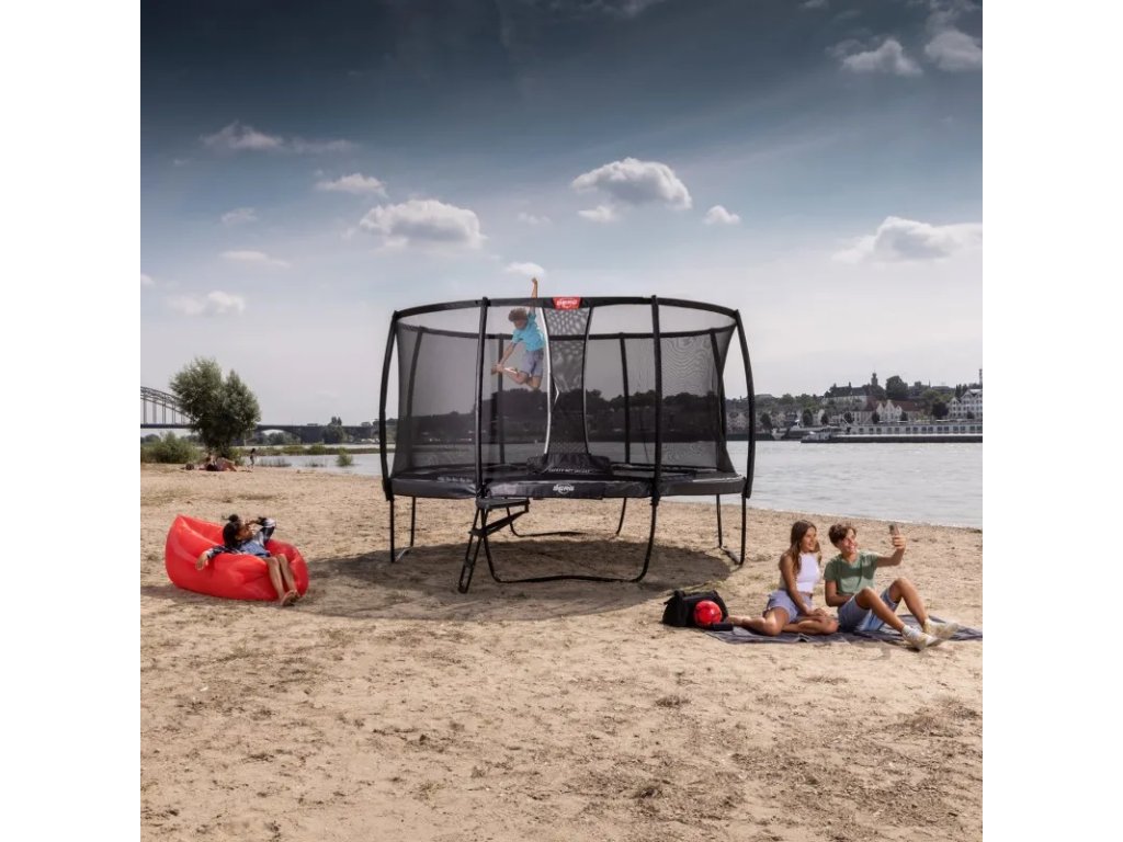 Trampolína BERG Elite Grey 380 s ochrannou sítí Deluxe je kvalitní a bezpečná trampolína navržena pro dlouhé a bezpečné skákání.