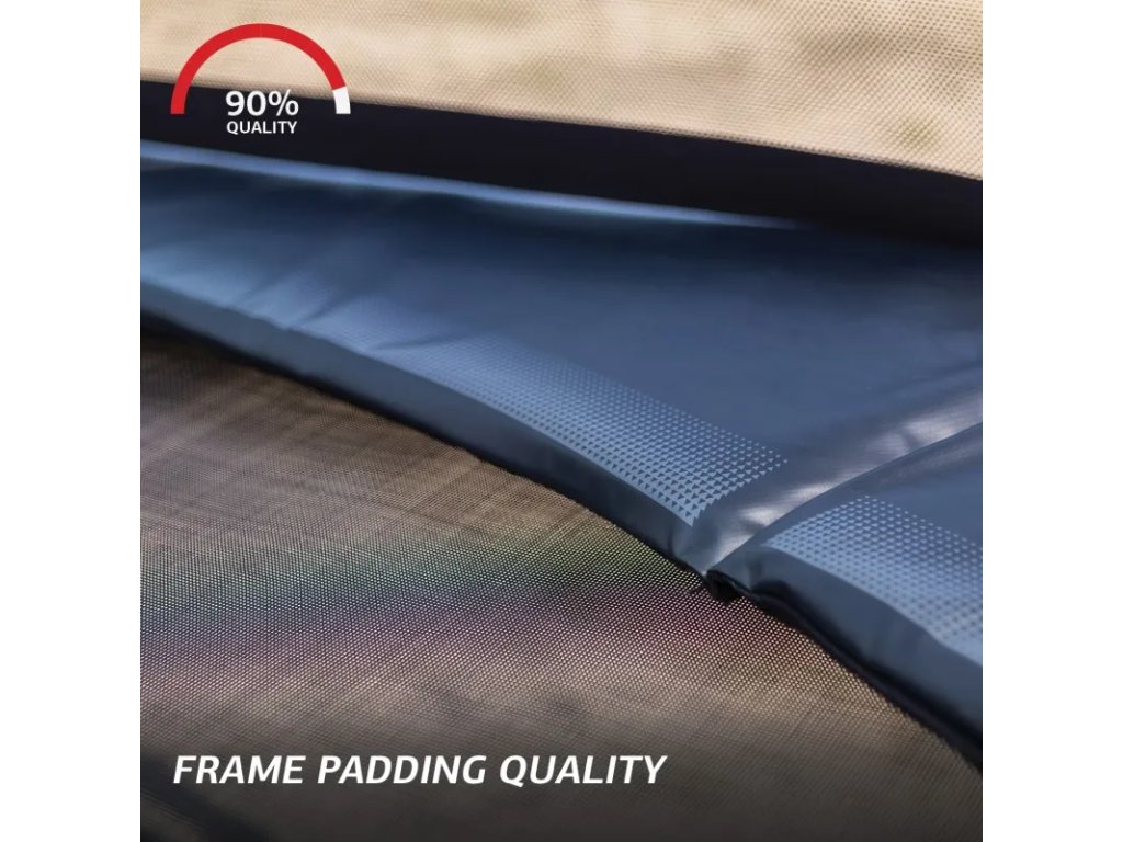 • Kvalita: vysoký počet silných pružin (o 30% pružin více ve srovnání se standardními trampolínami!) se díky novému postupu nasazuje při montáži mnohem snadněji (červené oko pružiny na červenou značku na rámu). Pružiny jsou navíc opatřeny velmi odolným zinkováním, které zajišťuje vynikající antikorozní vlastnosti.