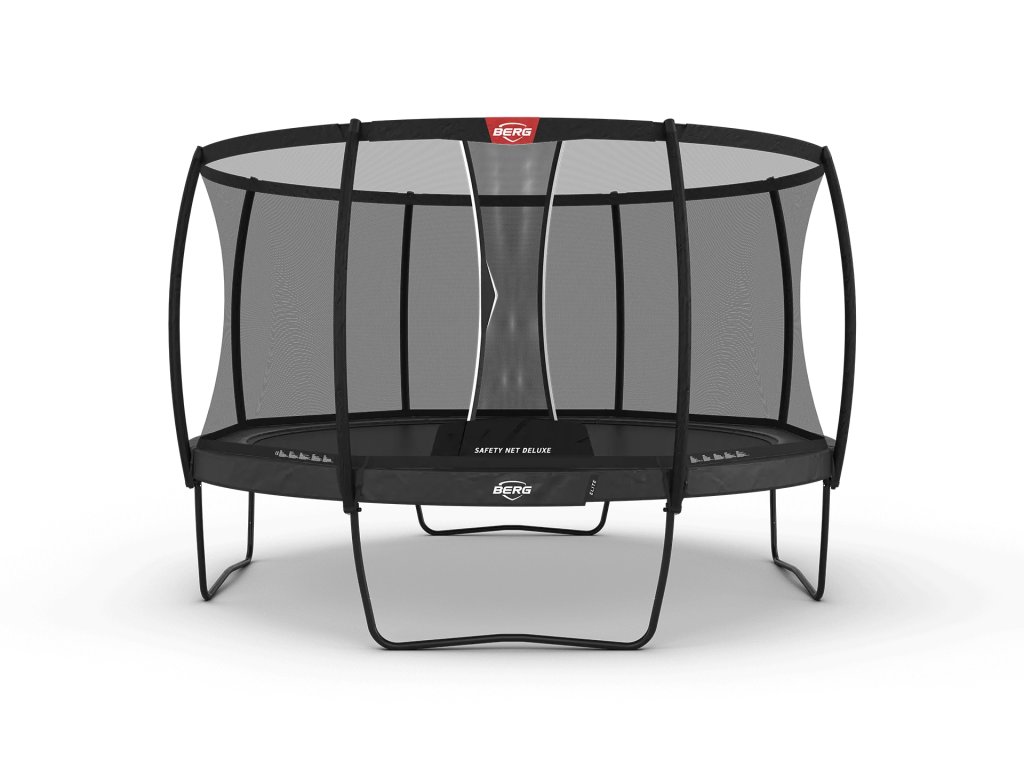 Trampolína BERG Elite Regular 430 Grey s ochrannou sítí Deluxe je kvalitní a bezpečná trampolína navržena pro dlouhé a bezpečné skákání.