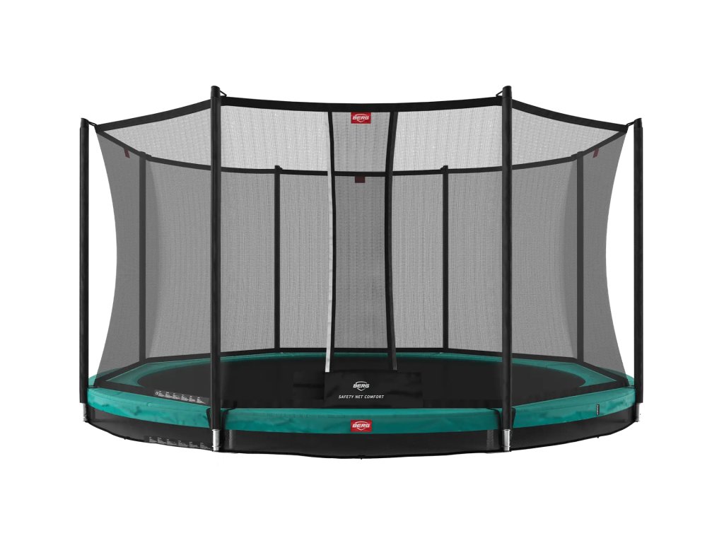 Trampolína BERG Favorit InGround 380 Green s ochrannou sítí Comfort je navržena pro dlouhé a bezpečné skákání.