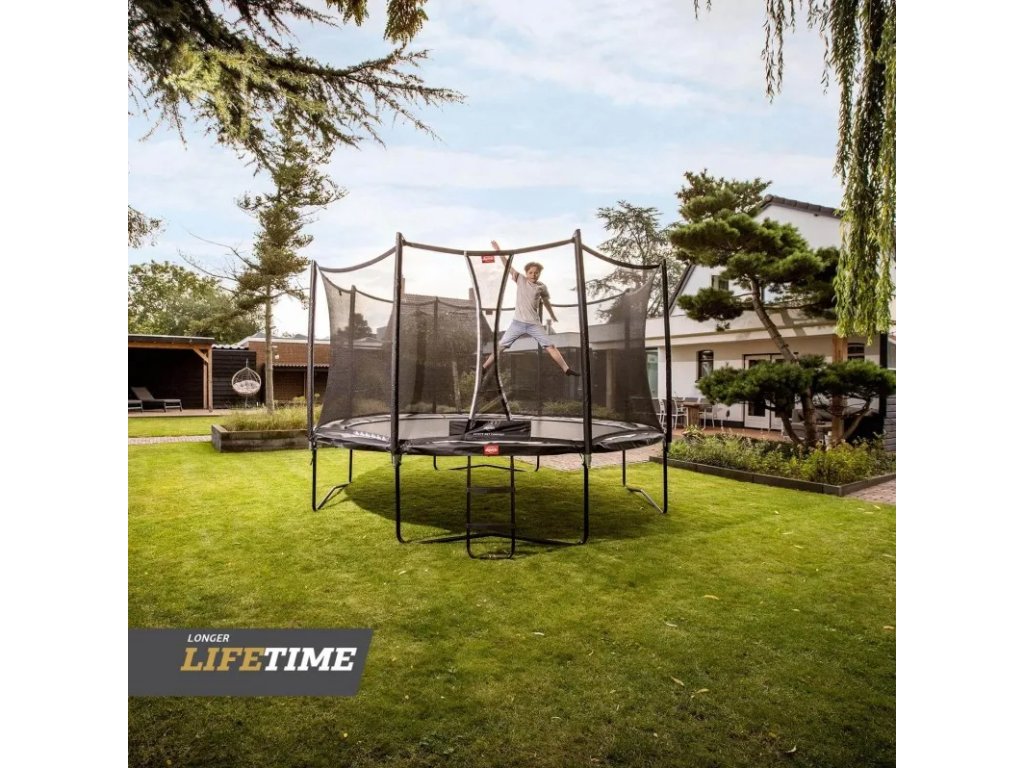 Trampolína BERG Favorit Regular 270 Grey s ochrannou sítí Comfort je navržena pro dlouhé a bezpečné skákání. Tato trampolína patří k velikostně menším trampolínám, proto je taktéž vhodná pro menší děti nebo úplné začátečníky.