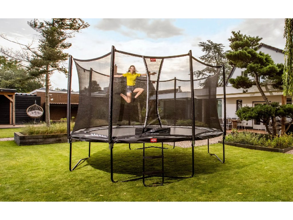Trampolína BERG Favorit Regular 330 Green s ochrannou sítí Comfort je navržena pro dlouhé a bezpečné skákání.