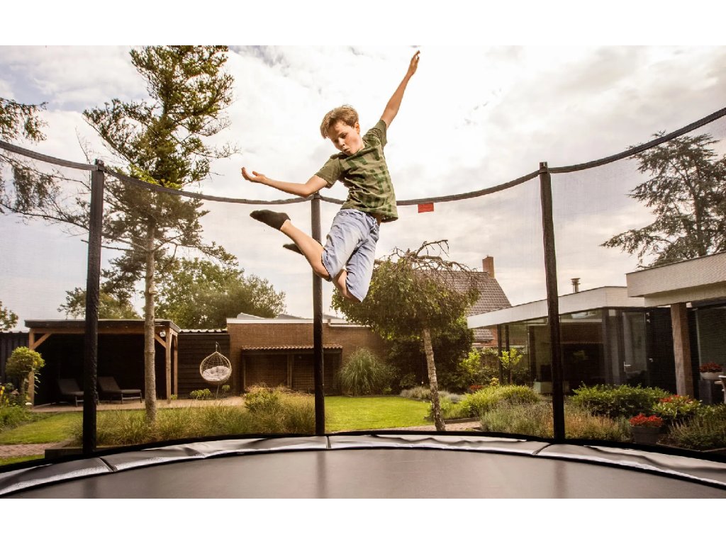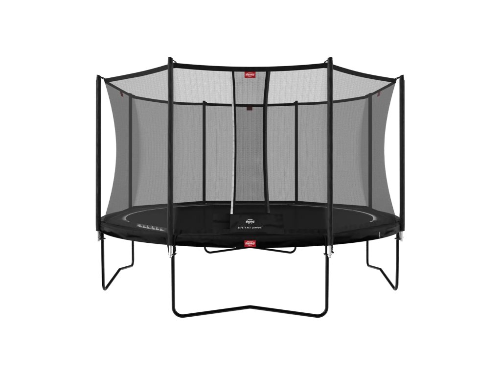 Trampolína BERG Favorit Regular 380 Black s ochrannou sítí Comfort je navržena pro dlouhé a bezpečné skákání.