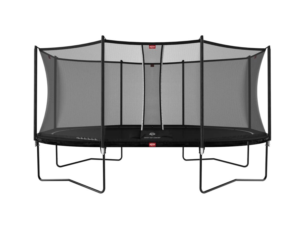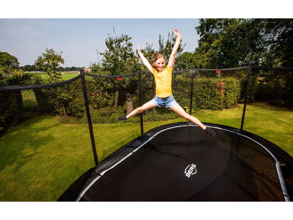 Trampolína BERG Grand Favorit Regular 520 Black s ochrannou sítí Comfort je navržena pro dlouhé a bezpečné skákání.