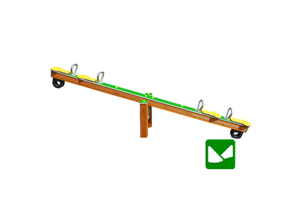 Vahadlová houpačka pro čtyři děti je hravý prvek, který podporuje přirozený pohyb dětí, rozvoj koordinace a přináší spoustu zábavy.